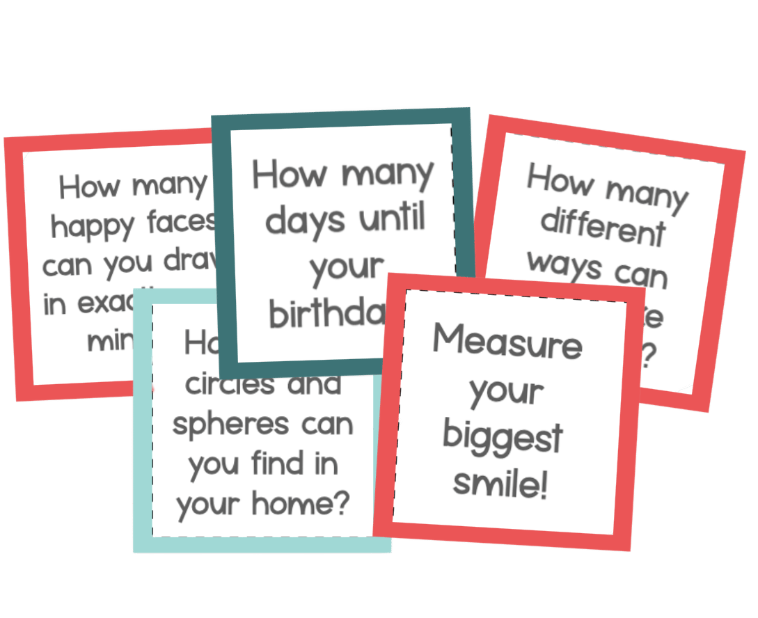 Each grab-and-go activity invites kids to explore real-world math questions like: “How many months until you turn 13?”